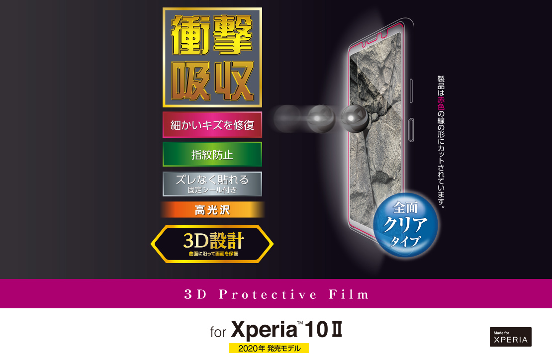 特殊構造のフィルムが衝撃を緩和し、液晶画面をキズや汚れから守る衝撃吸収フィルムです。