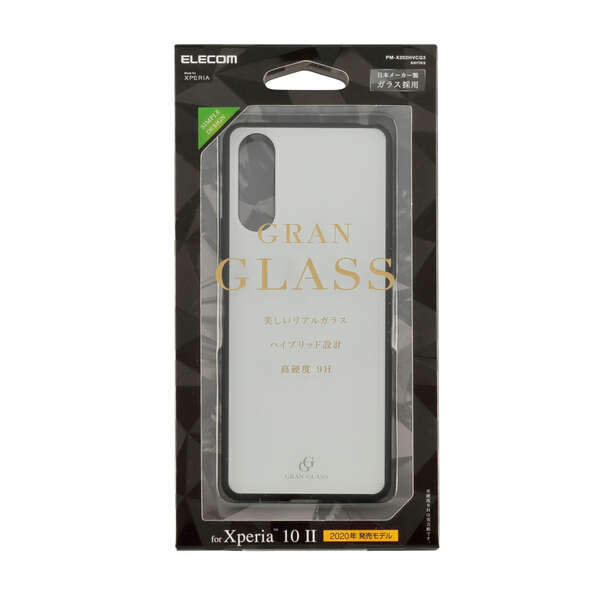 TPU素材とポリカーボネートとガラスの3種構造で、機器本体を美しく保護するXperia 10 II用ハイブリッド/ガラスケースです。