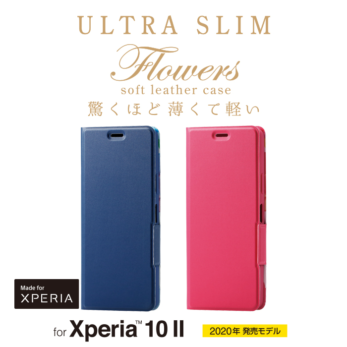 端末の薄さ、軽さを損ねないウルトラスリムタイプのXperia 10 II用ソフトレザーケース(手帳型)です。