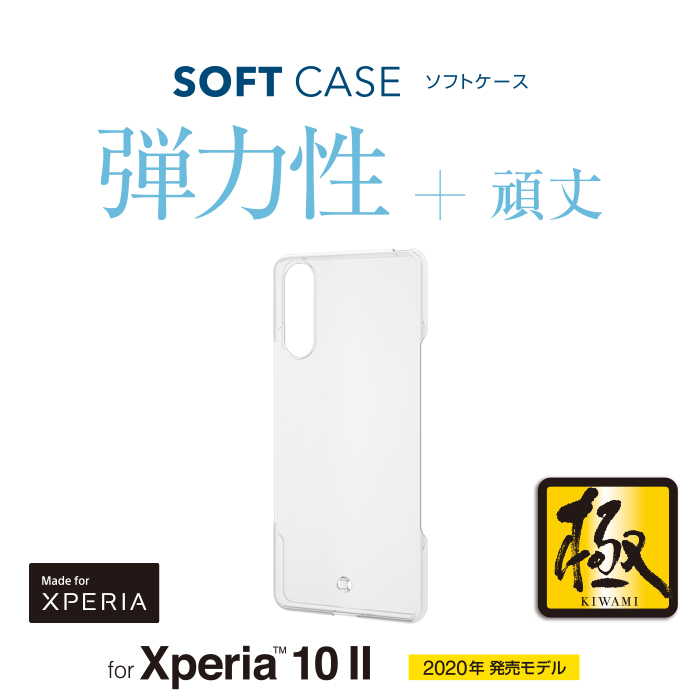 強じんな耐久性としなやかな弾力性を合わせ持ったTPU(熱可塑性ポリウレタン)素材を使用した、本体デザインが美しく際立つXperia 10 II用ソフトケースです。