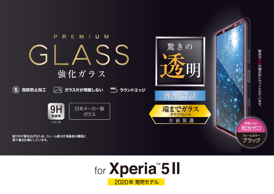 液晶画面を隅から隅まで保護できる!なめらかな指滑りを実現するXperia 5 II用液晶保護ガラスです。