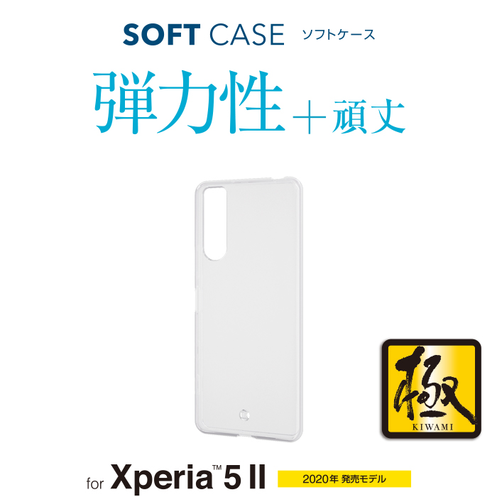 強じんな耐久性としなやかな弾力性を合わせ持ったTPU(熱可塑性ポリウレタン)素材を使用した、本体デザインが美しく際立つXperia 5 II用ソフトケースです。