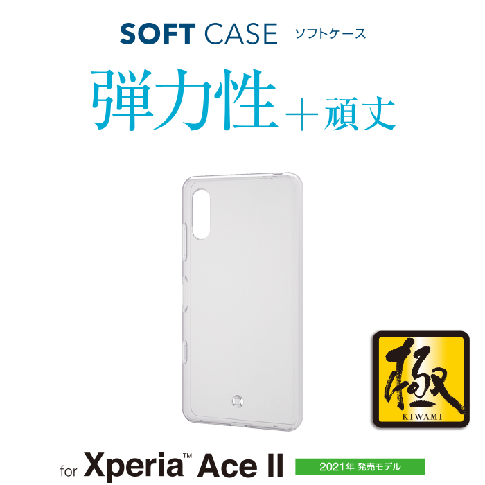 強じんな耐久性としなやかな弾力性を合わせ持ったTPU(熱可塑性ポリウレタン)素材を使用した、本体デザインが美しく際立つXperia Ace II用ソフトケースです。