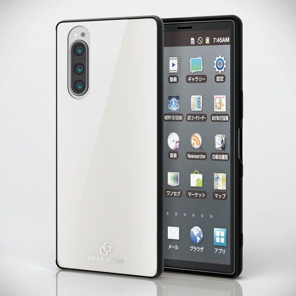 TPU素材とポリカーボネートとガラスの3種構造で、機器本体を美しく保護するXperia 5用ハイブリッド/ガラスケースです。