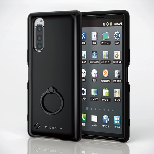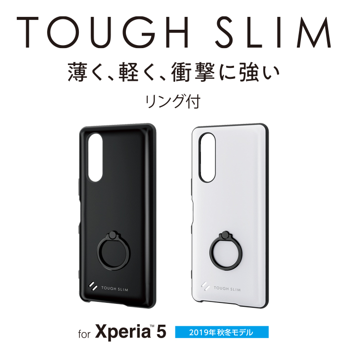 便利なフィンガーリング付きで、独自設計のエアクッションが効率的に衝撃を吸収する、薄くて軽い耐衝撃ケースXperia 5用TOUGH SLIM/リング付です。