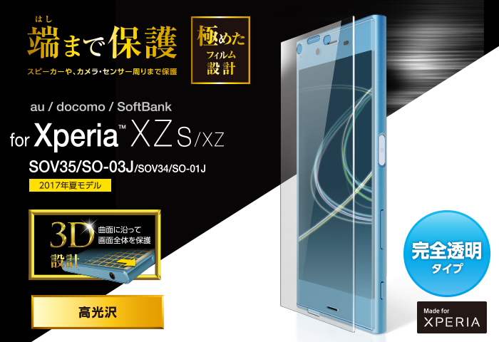 - 端末のガラス面と同じラウンド形状を再現した3D設計で、画面の端まで保護するXperia (TM) XZs / Xperia (TM) XZs用フルカバーフィルムです。