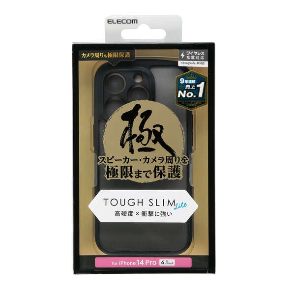 極みシリーズの最高峰。iPhoneを極限まで包み込む、超精密設計!高硬度の特殊素材と、弾力性のあるTPU素材を使用し、スピーカー・カメラ周りまで覆う極み設計のiPhone 14 Pro用TOUGH SLIM LITEケースです。