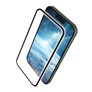 3D設計のPETフレームと二次強化で角割れを防ぐ、高透明・ブルーライトカットタイプの画面保護ガラスフィルムです。ぴったり位置合わせできる貼り付けツール付きです。