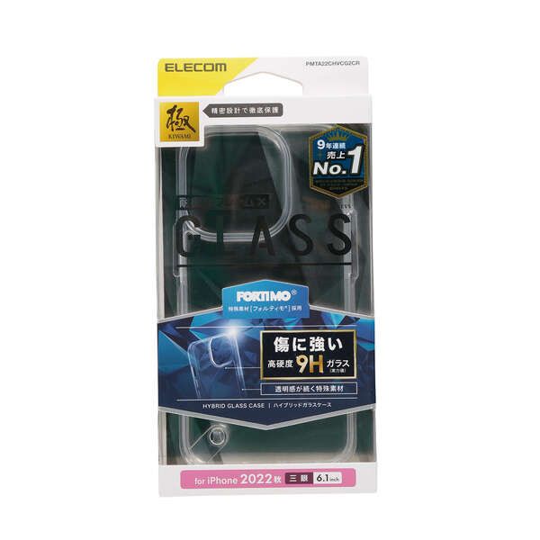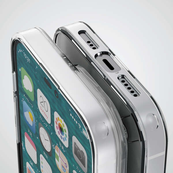 高弾性・無黄変性に優れた三井化学(株)製「フォルティモ(R)/TPU(熱可塑性ポリウレタン)」素材とガラスの2種構造で、機器本体の美しさを損ねず保護するiPhone 14 Pro用ハイブリッドケース/ガラスです。