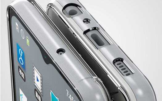 カバー背面と前面にそれぞれ凸型リブ設計を施し、背面カメラや背面、液晶画面のキズ付きを防ぎます。