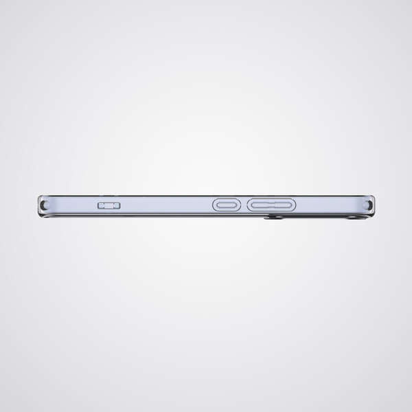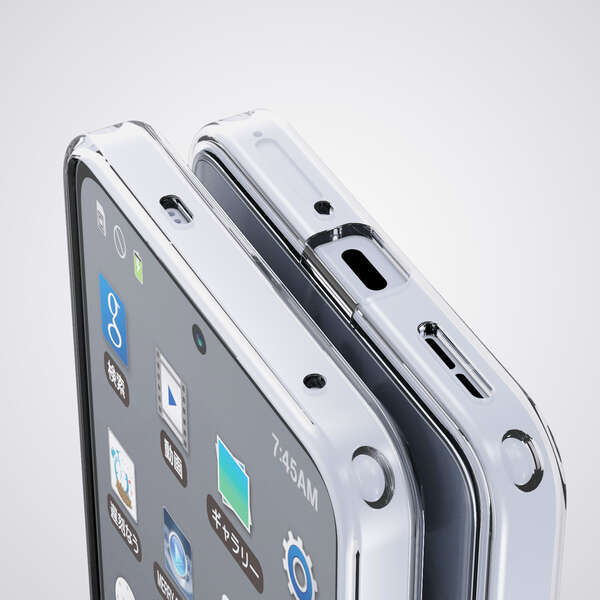 側面には高弾性・無黄変性に優れた三井化学(株)製「フォルティモ(R)」TPU(熱可塑性ポリウレタン)素材を、背面には強じんで透明度の高いポリカーボネート素材を使用した、スリムなスタイルのハイブリッドケースです。