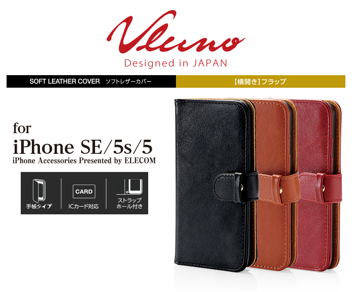 高級感あるソフトレザー素材を使用したiPhone SE/5s/5用ソフトレザーカバー(手帳型)です。
