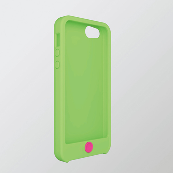 ホームボタンカバーを選べて、本体とボタン部分の2色使いがキュートなiPhone SE/5s/5用シリコンケース。