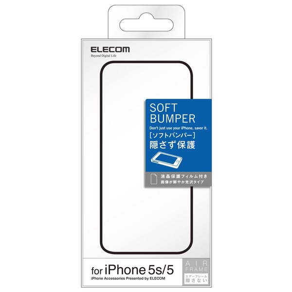 iPhone SE/5s/5のスタイルを損なわないバンパータイプ。強じんな耐久性としなやかな弾力性を合わせ持ったTPU(熱可塑性ポリウレタン)素材を使用したソフトバンパーと液晶保護フィルムのセット。