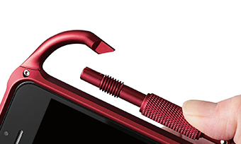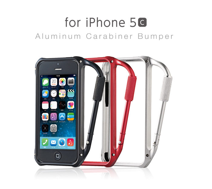 スタイリッシュなアルミバンパーとカラビナが一体になり、そのままぶら下げることができるiPhone 5c用アルミカラビナバンパーです。アルミ素材にサンドブラスト加工を施し、手になじみやすくスタイリッシュな仕上げになっています。