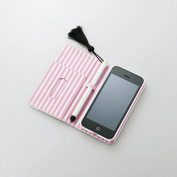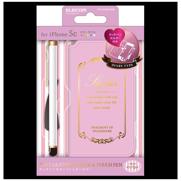 箔押しがキラリと輝くスタイリッシュなブックタイプ!高級感あるソフトレザー素材を使用しながら、スリムなスタイルを実現したタッチペン付きのiPhone 5c用ソフトレザーカバー。