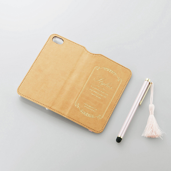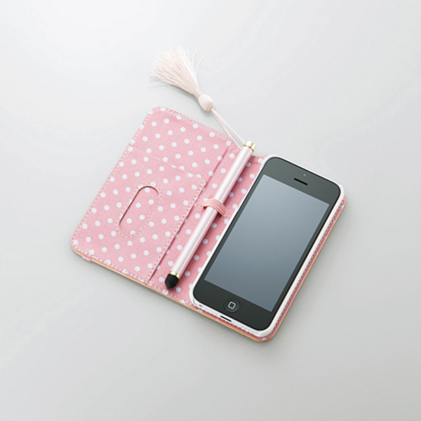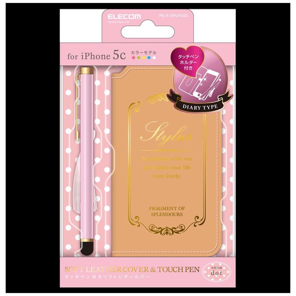 箔押しがキラリと輝くスタイリッシュなブックタイプ!高級感あるソフトレザー素材を使用しながら、スリムなスタイルを実現したタッチペン付きのiPhone 5c用ソフトレザーカバー。