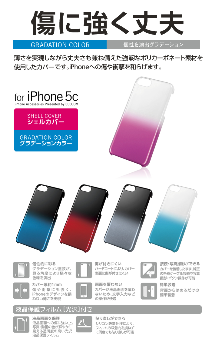 iPhone 5cをお好きなカラーにコーディネート!本体をキズや汚れから守る、ポリカーボネート製のスリムなシェルカバーと保護フィルム。