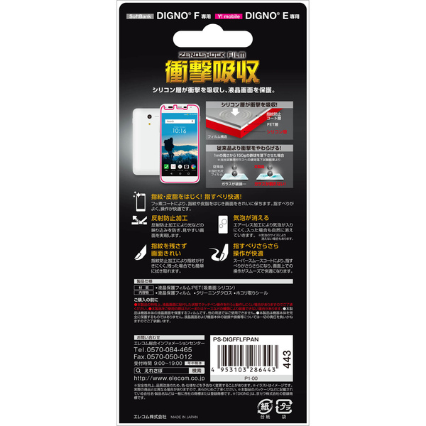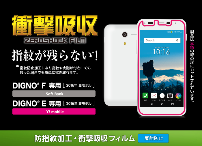 - 特厚シリコン層が衝撃を吸収するSoftbank DIGNO F / Y!mobile DIGNO E(503KC)用の衝撃吸収フィルムです。