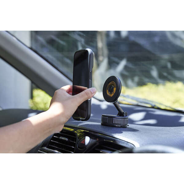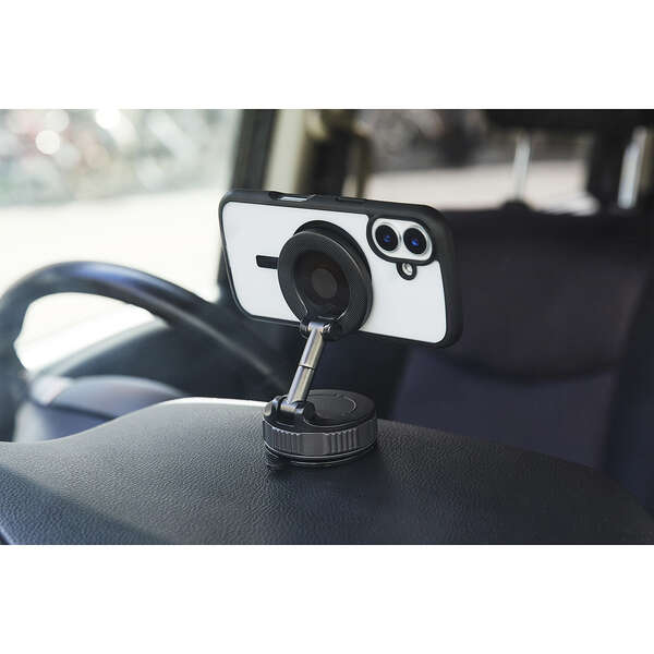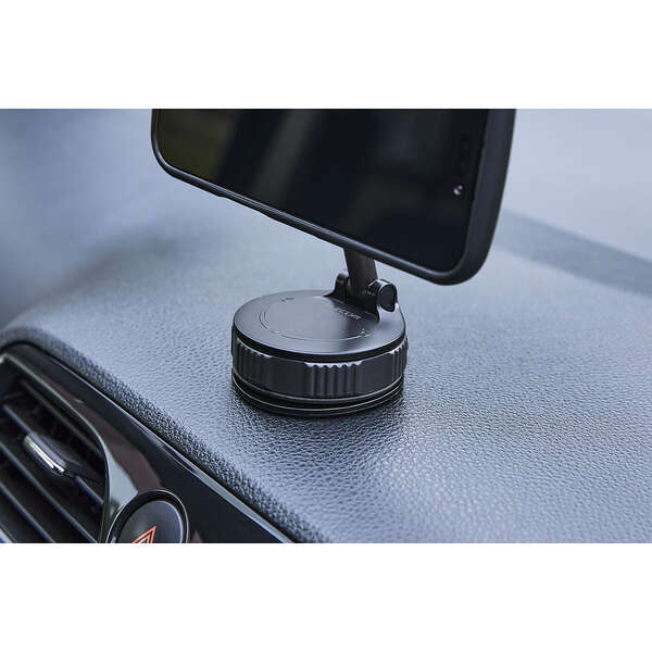 ドライブをもっと快適に。車のダッシュボードに簡単に取り付けられるスマホホルダーです。N52超強力ネオジム磁石でスマートフォンをしっかり固定し、運転中の振動や急ブレーキでも落下を防止。ダイヤルを回して真空状態にすることで浅めのシボ面にも強力に吸着できるゲル吸盤タイプです。使わないときは邪魔にならないよう、折りたたんでコンパクトに収納できます。