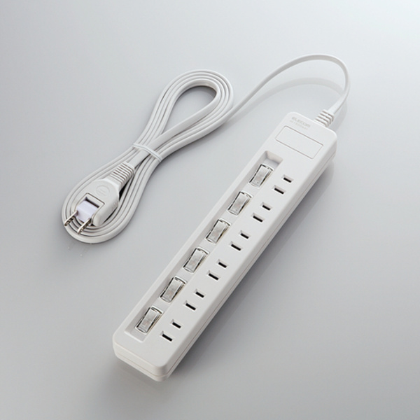 接続機器の待機電流を個別にカットできる!2P式6個口の省エネタップ。機器類をそれぞれON/OFFできる個別スイッチ付き。スッキリと配線できるスイングプラグ採用。