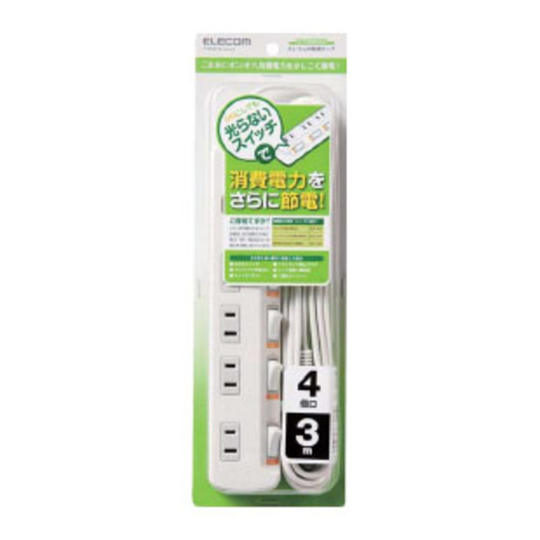 ONにしても光らないスイッチで消費電力をさらに節電!待機電力を個別に節約できる、個別スイッチ付 省エネタップ。