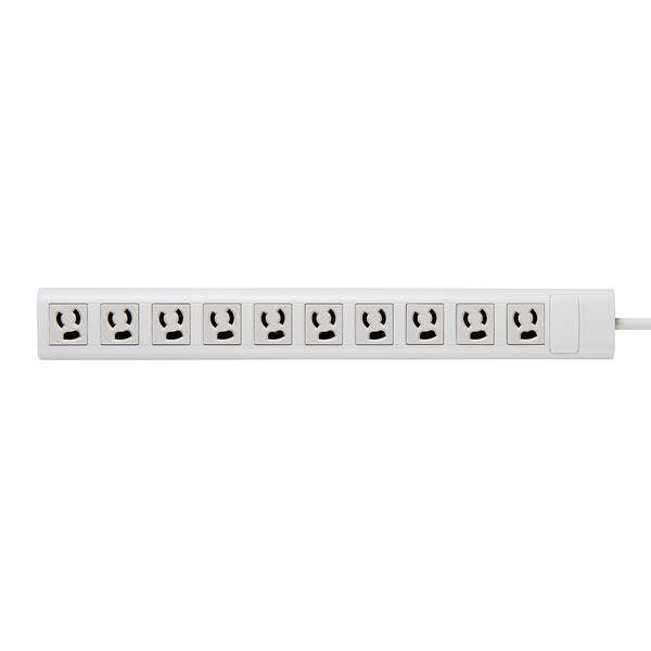 プラグと差込口はそれぞれ3ピン接続の構成で、10口ある差込口には抜け止め機能を備えています。