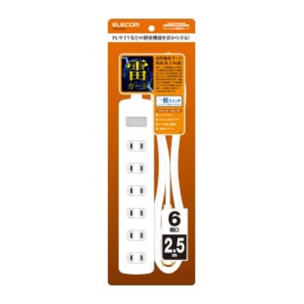 パソコンやテレビなどの精密機器を雷から守る!高性能雷サージ吸収素子内蔵、安全性と使い勝手に配慮した雷ガードタップ。待機電力をまとめて節約できる一括スイッチ付。