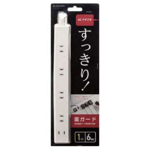 ACアダプタをスッキリ接続!差込口の間隔が広く幅広のACアダプタでも隣の差込口をふさがない、雷ガード付きの“ACアダプタ対応スリムタップ”。