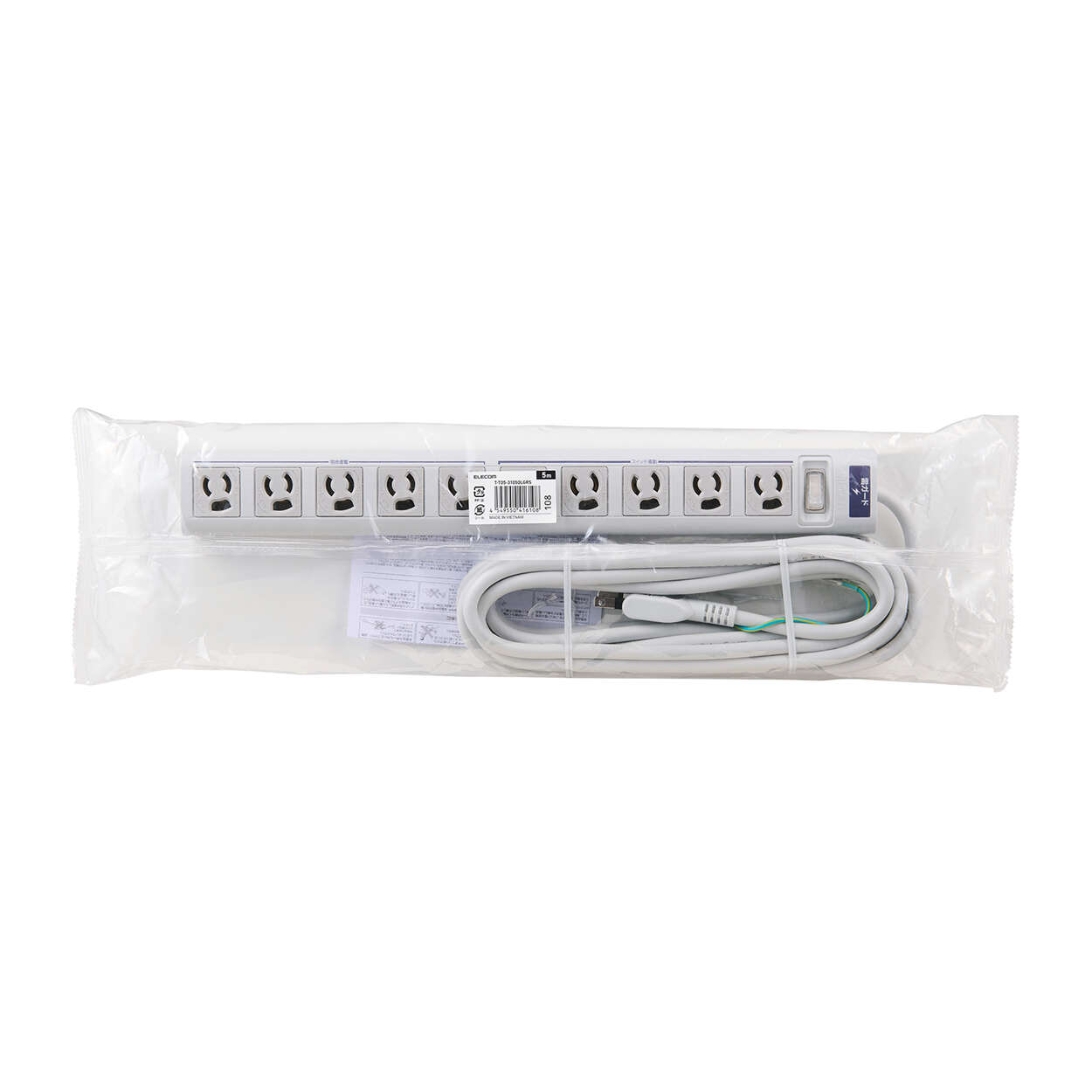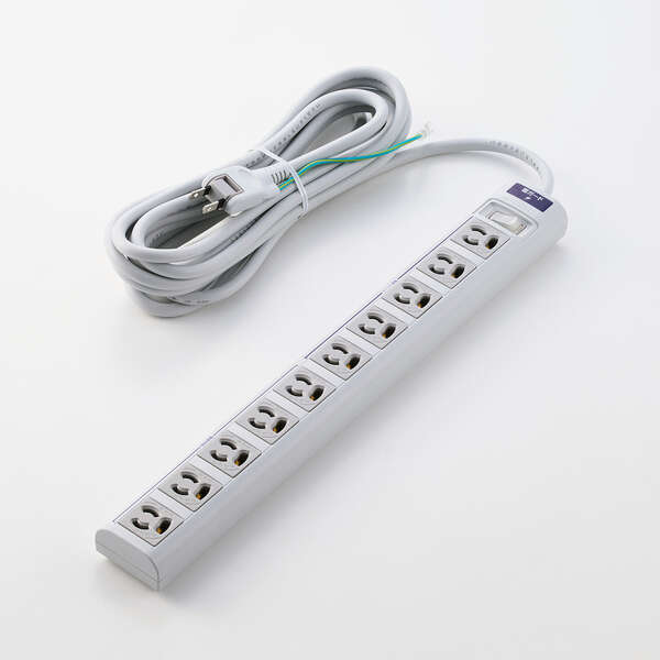 プロジェクターやモニターなどの3ピンプラグ機器を、アダプターなしで接続できる3ピンプラグ対応タップです。抜け止め機能付きの差込口を10口備え、設置に便利な仮固定用マグネット、狭い場所でも配線しやすい2ピンのスイングプラグ、点灯式一括スイッチ(※)、設置に便利な仮固定用マグネットを搭載。雷ガード機能と丈夫なキャブタイヤコードにより、安全に使用できます。※コード側5口のみ連動