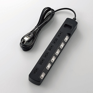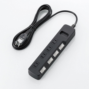 接続した機器の電源を個別にオン/オフできる「個別スイッチ」を装備していますので、待機電流を減らし、電気代の節約と省エネに有効です。また、ACアダプタや大き目のプラグを接続してもスイッチに干渉しにくい、斜め配置のスイッチを採用しています。 |