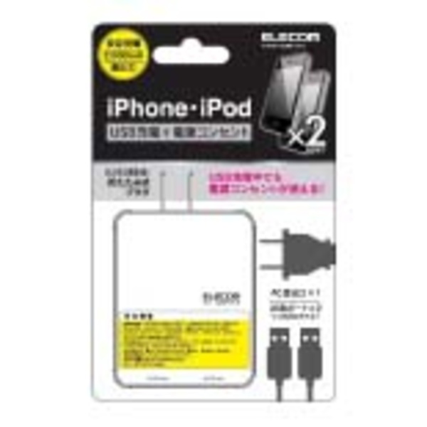 USB充電中でも電源コンセントが使える電源用差込口付き!2つの充電ポートを装備し、iPhoneやiPodなど2台を充電できる、iPhone用 USB充電ポート付きタップ。