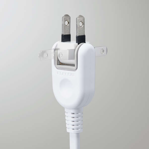 機器のコードがコンセントに届かない場合などに、電源を延長するためのコードです。極性のある2ピン式プラグ・3ピン式プラグでも使用できます。直径10mmの吊り穴を配したシリコン製のタグが付属しており、フックなどに引っ掛けることが可能。トラッキング防止プラグやホコリ防止シャッターで使用時の事故を防ぎ安全に使えます。 ※3ピン式プラグ使用時、アースは機能しません。