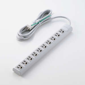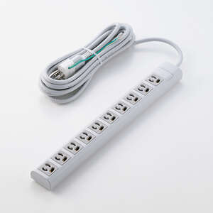 プロジェクターやモニターなどの3ピンプラグ機器を、アダプターなしで接続できる3ピンプラグ対応タップです。抜け止め機能付きの差込口を10口備え、設置に便利な仮固定用マグネットを搭載。雷ガード機能と丈夫なキャブタイヤコードにより、安全に使用できます。3ピン-2ピン変換アダプター(アース線付き)が付属しています。