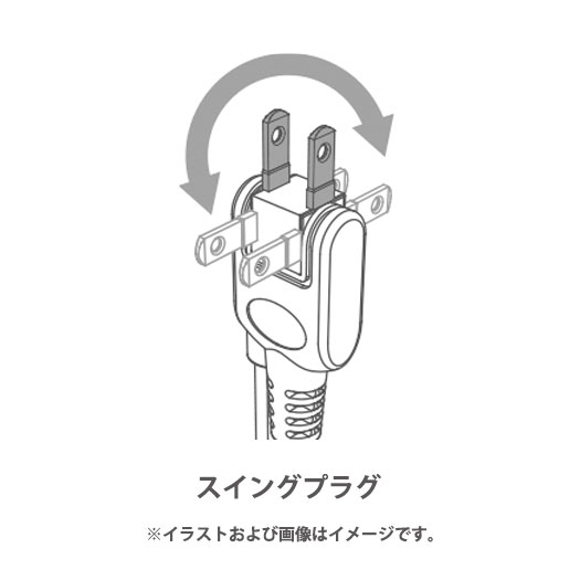 狭い場所でも配線しやすい180度スイング可能な2ピンプラグ(アース線付き)を採用しています。