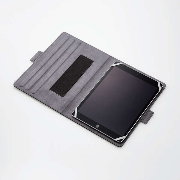 シリコン製ラバーバンドでタブレットの四隅をしっかりホールドすることで、8.5~11.5インチのタブレットにフレキシブルに対応する汎用ケースです。