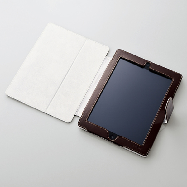 横置きで立てて使えるスタンドが付いた高級感のあるソフトレザーケース。