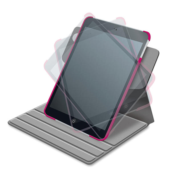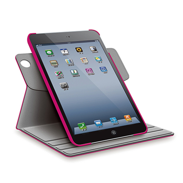 回転させて縦横自由に使える!iPad mini(2012/2013 Retinaディスプレイモデル)に装着したまま360度回転させることができ、縦向き、横向きのお好きな角度に設置できるソフトレザーカバーとフルサイズ液晶保護フィルムのセット。