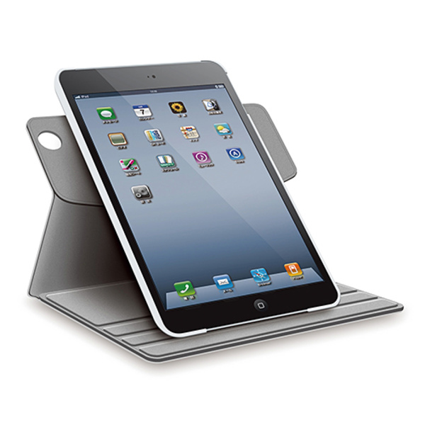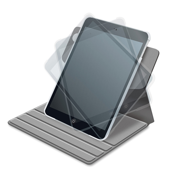 回転させて縦横自由に使える!iPad mini(2012/2013 Retinaディスプレイモデル)に装着したまま360度回転させることができ、縦向き、横向きのお好きな角度に設置できるソフトレザーカバーとフルサイズ液晶保護フィルムのセット。