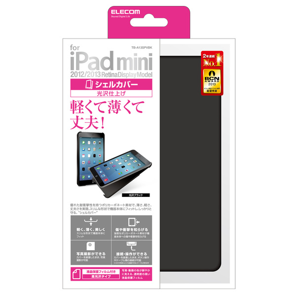 iPad mini(2012/2013Retinaディスプレイモデル)をキズや汚れからしっかり守る!軽くて丈夫なポリカーボネート製のシェルカバーとフルサイズ液晶保護フィルムのセット。