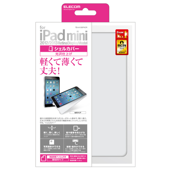 iPad mini(2012/2013Retinaディスプレイモデル)をキズや汚れからしっかり守る!軽くて丈夫なポリカーボネート製のシェルカバーとフルサイズ液晶保護フィルムのセット。