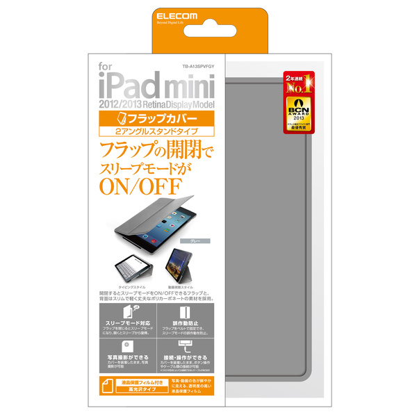スリムなスタイルを実現したiPad mini(2012/2013Retinaディスプレイモデル)用フラップカバーです。