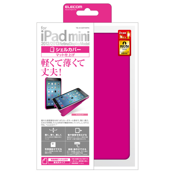 iPad mini(2012/2013Retinaディスプレイモデル)をキズや汚れからしっかり守る!軽くて丈夫なポリカーボネート製のシェルカバーとフルサイズ液晶保護フィルムのセット。