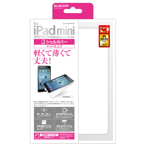iPad mini(2012/2013Retinaディスプレイモデル)をキズや汚れからしっかり守る!軽くて丈夫なポリカーボネート製のシェルカバーとフルサイズ液晶保護フィルムのセット。
