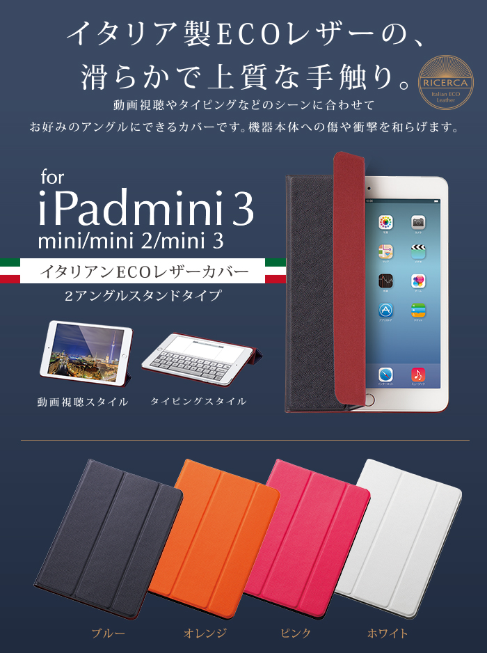 イタリア製高級ECOレザーを使用しシーンに合わせて2アングルにできる、iPad mini用フラップカバー。