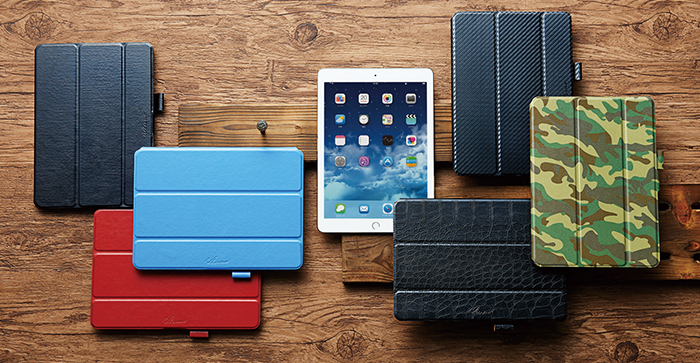 縦向き、横向きのお好きな角度で使用できる、スリムなスタイルを実現したiPad Air 2用フラップカバーです。
