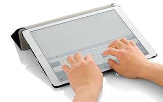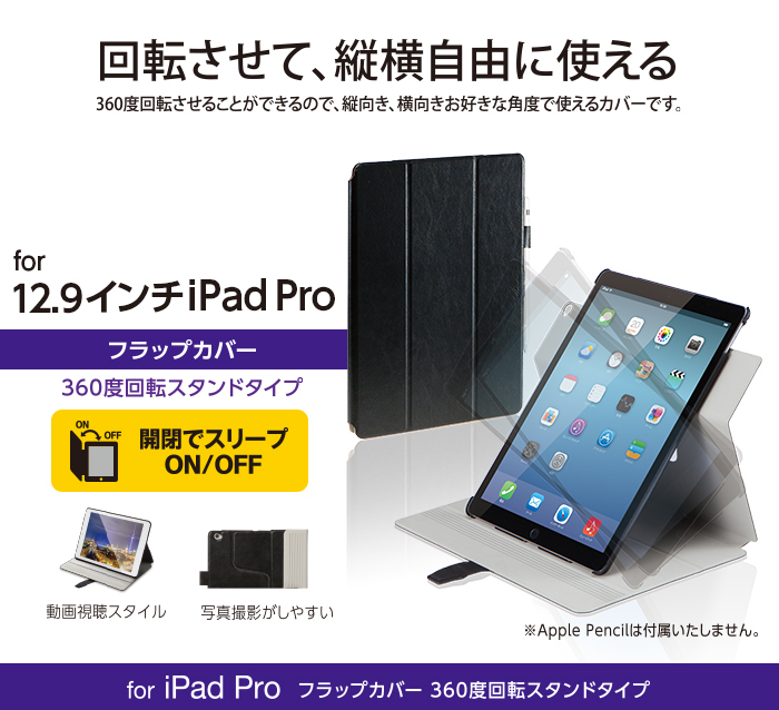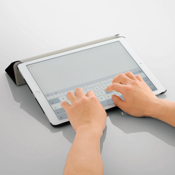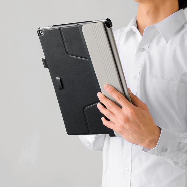 縦向き、横向きのお好きな角度で使用できる、スリムなスタイルを実現したiPad Pro用フラップカバーです。