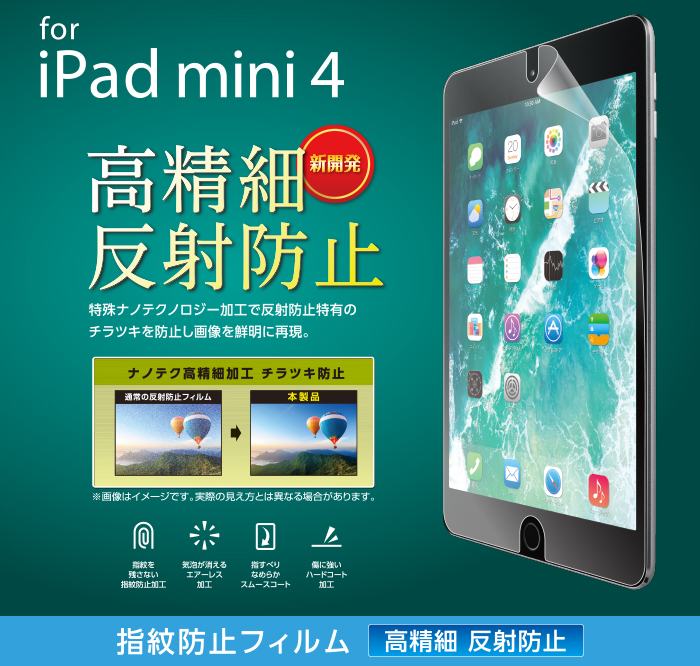 - iPad mini 2019年モデル、iPad mini 4の液晶画面を傷や汚れから守る、指紋防止・高精細反射防止タイプの液晶保護フィルムです。