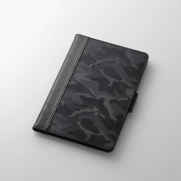 フリーポケットとカードポケット、ペンホルダー、ハンドホールドベルトを備えて日常での使いやすさを向上させた、カモフラージュデザインのファブリックカバーです。