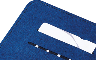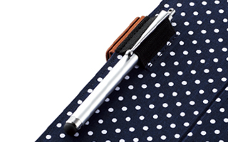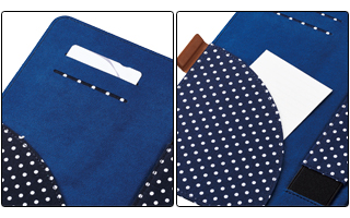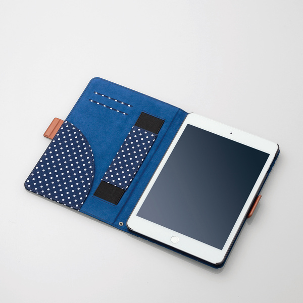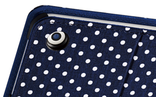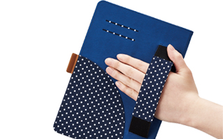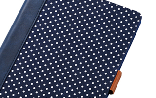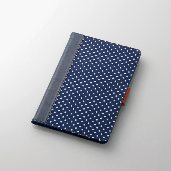 フリーポケットとカードポケット、ペンホルダー、ハンドホールドベルトを備えて日常での使いやすさを向上させた、ドットデザインのファブリックカバーです。